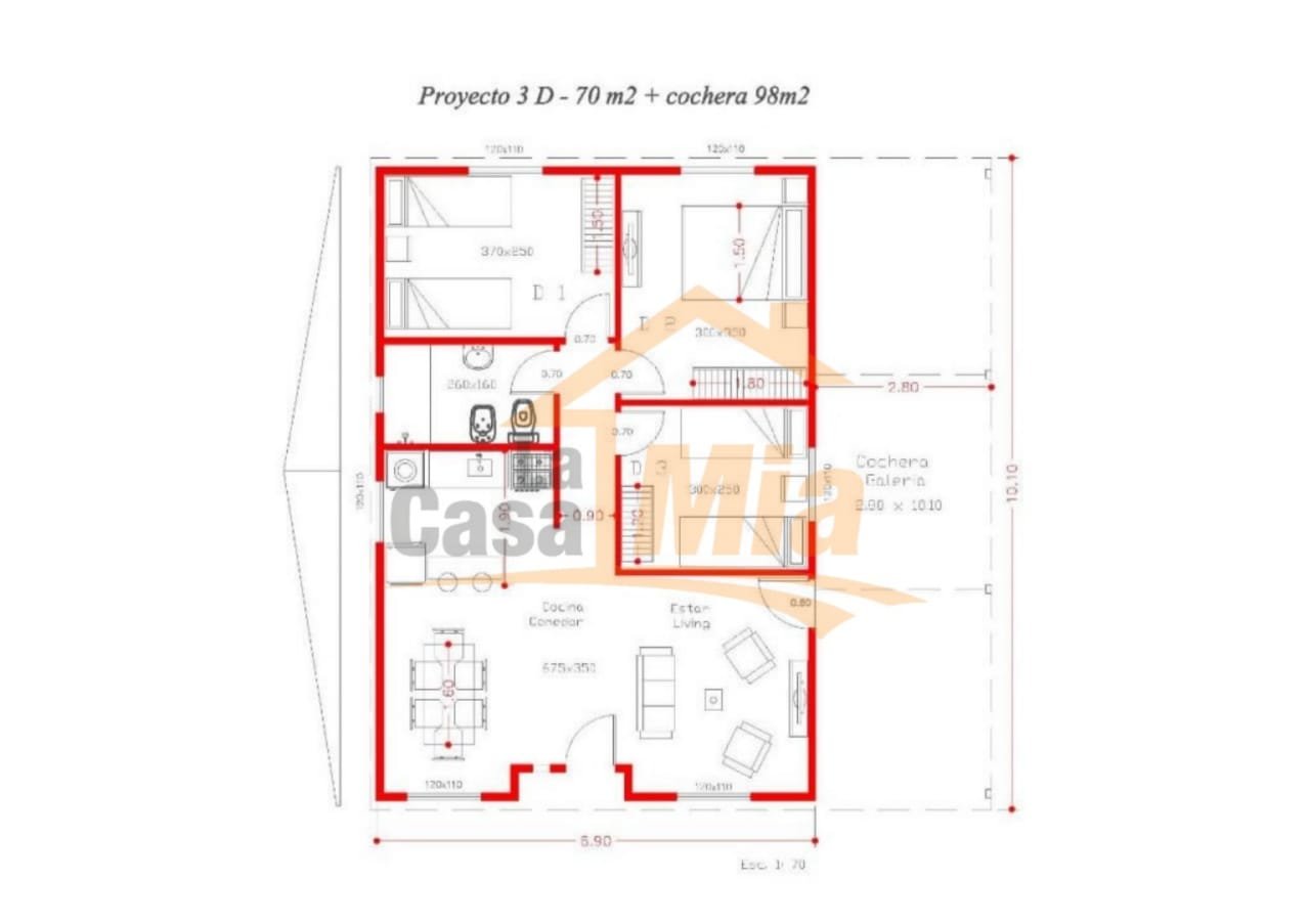 Casa Prefabricada de 70 m2 – 3 Dorm + Cochera