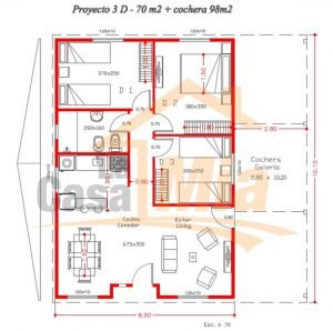Casa Prefabricada de 70 m2 – 3 Dorm + Cochera